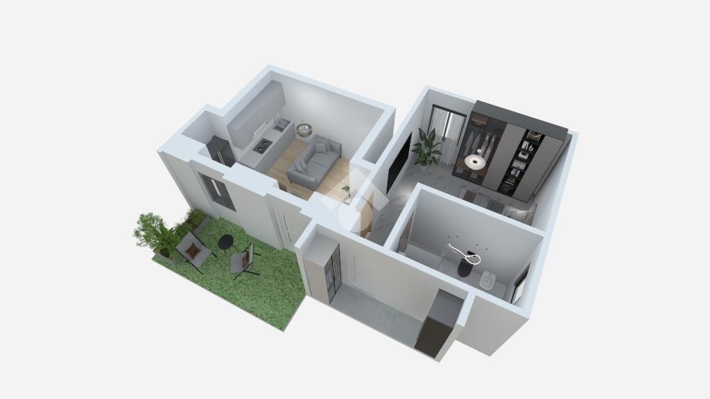 L’appartamento si sviluppa su circa 42 mq ed è composto da zona giorno con cucina a vista, disimpegno, camera matrimoniale e bagno moderno. La particolarità che lo distingue in questa fascia di prezzo è la presenza di area esterna privata sia all’ingresso sia sul retro, ideale per chi desidera uno sfogo all’aperto senza rinunciare alla praticità del piano terra. Completano la proprietà posti auto scoperti assegnati all’interno della corte.